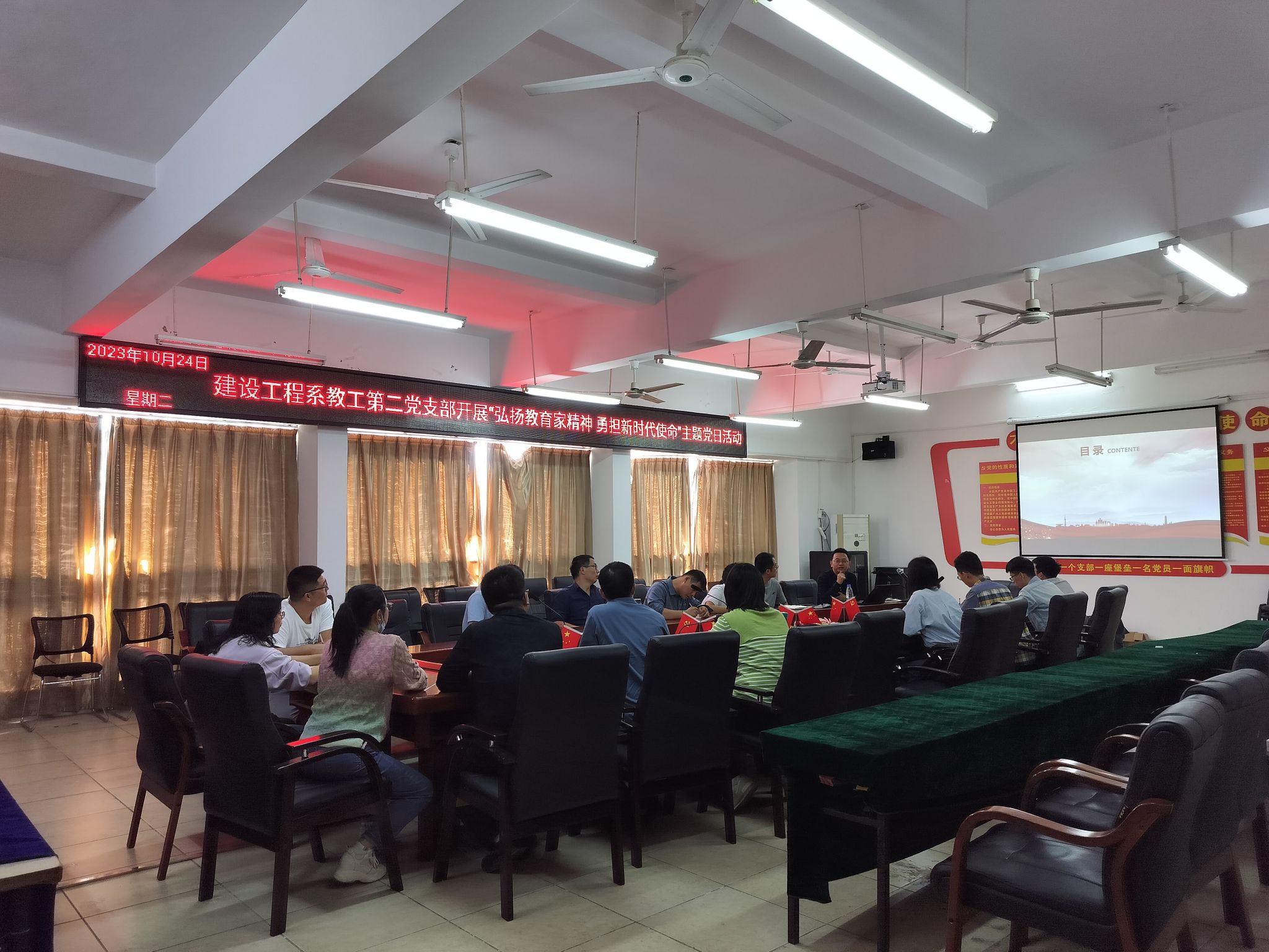本网讯:为深入开展学习贯彻习近平新时代中国特色社会主义思想主题教育,大力践行教育家精神,10月24日,建设工程系教工第二党支部开展“弘扬教育家精神 勇担新时代使命”主题党日活动。