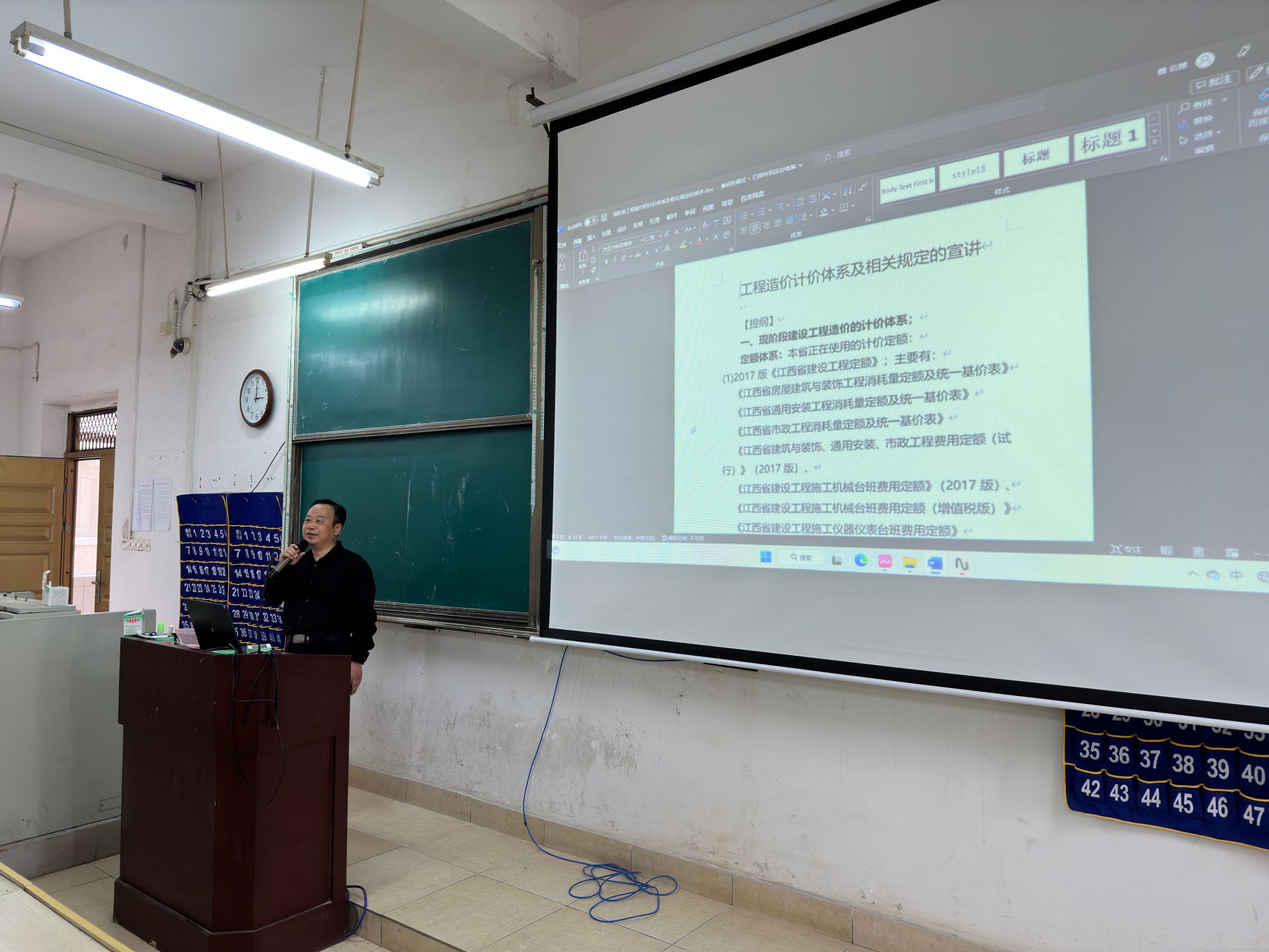 本网讯:为进一步加深工程造价专业学生对计价体系及相关考试条件的了解,建设工程系于3月11日在主教Z1D1举办工程造价计价专题宣讲会,会议邀请赣州市工程质量管理服务中心造价科科长、高级工程师钟效琼进行宣讲,我系造价专业学生参加本次会议,会议由建工系副主任代靖怡主持。
