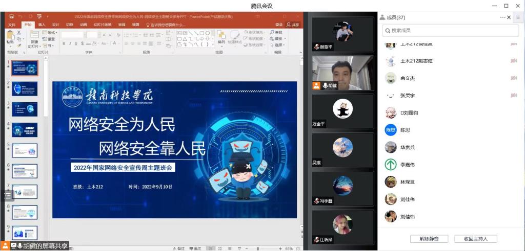 本网讯:为增强学生的网络安全防范意识,提高学生的网络安全防范能力,营造网络安全人人有责、人人参与的良好氛围。建设工程系于9月5日至9月13日,组织全部班级采用线上加线下的方式开展了“网络安全”主题班会。
