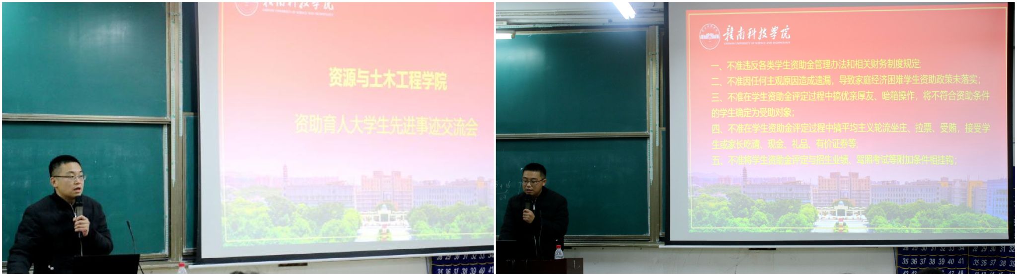 国家励志奖学金获得者黄绍仙同学、国家奖学金获得者邵志祥同学,面向各位受资助学生进行对自己亲身经历的感悟及优秀事迹的演讲,激励同学们在精神上奋勇向前、追求卓越。