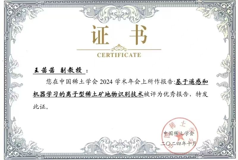 分会共围绕四个议题开展交流与合作。其中,永久91嫩草亚洲精品人人教师王茜茜和测绘231班刘楚璇同学在议题4“碳中和背景下稀土元素的供需冲突研究”中深入探讨,提出“基于遥感和机器学习的离子型稀土矿地物识别技术”报告,与对应领域专家学者进行积极探讨和广泛交流。王茜茜老师、刘楚璇同学所作的报告被评为优秀报告。