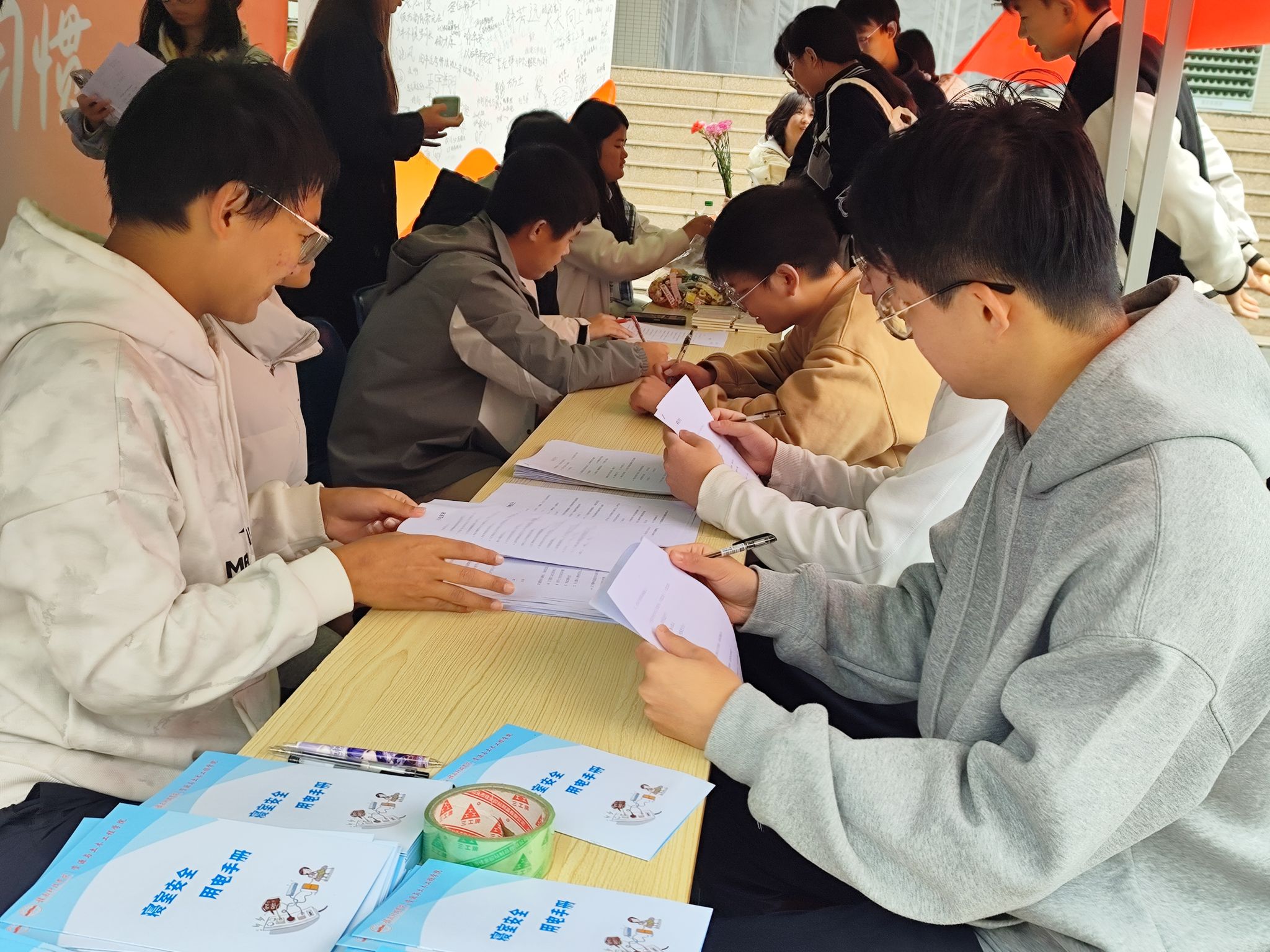 活动现场,工作人员向同学们分发寝室用电安全手册,宣传寝室用电安全知识。同学们随机抽取一组题目进行作答,答对相应题数的同学有机会得到公仔、钥匙扣、笔记本、黑字笔等奖品。前五十名来答题的同学附赠康乃馨一支。活动期间,同学们踊跃参与答题,气氛活跃,在永久91嫩草亚洲精品人人宿管部和校友部的共同努力下,本次活动取得圆满成功。