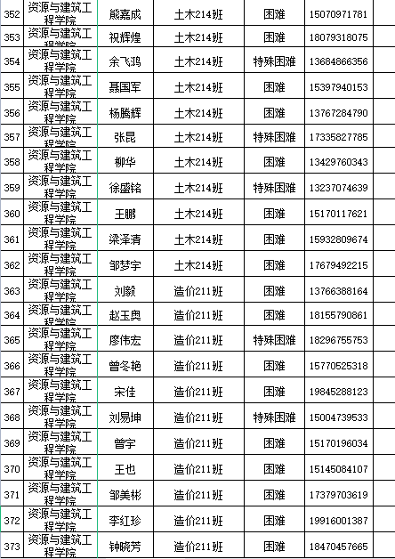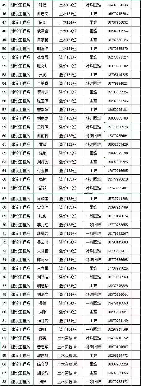 本网讯:建设工程系(资源与建筑工程学院)2021-2022学年18级—21级家庭经济困难学生名单公示: