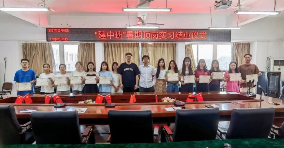 本网讯:9月9日,建工系“建中班”暑期顶岗结业仪式在崇善楼Z713顺利举办。本次结业仪式不仅是对参与同学们辛勤付出的肯定,更是对他们在实习期间所取得的成绩的赞扬。