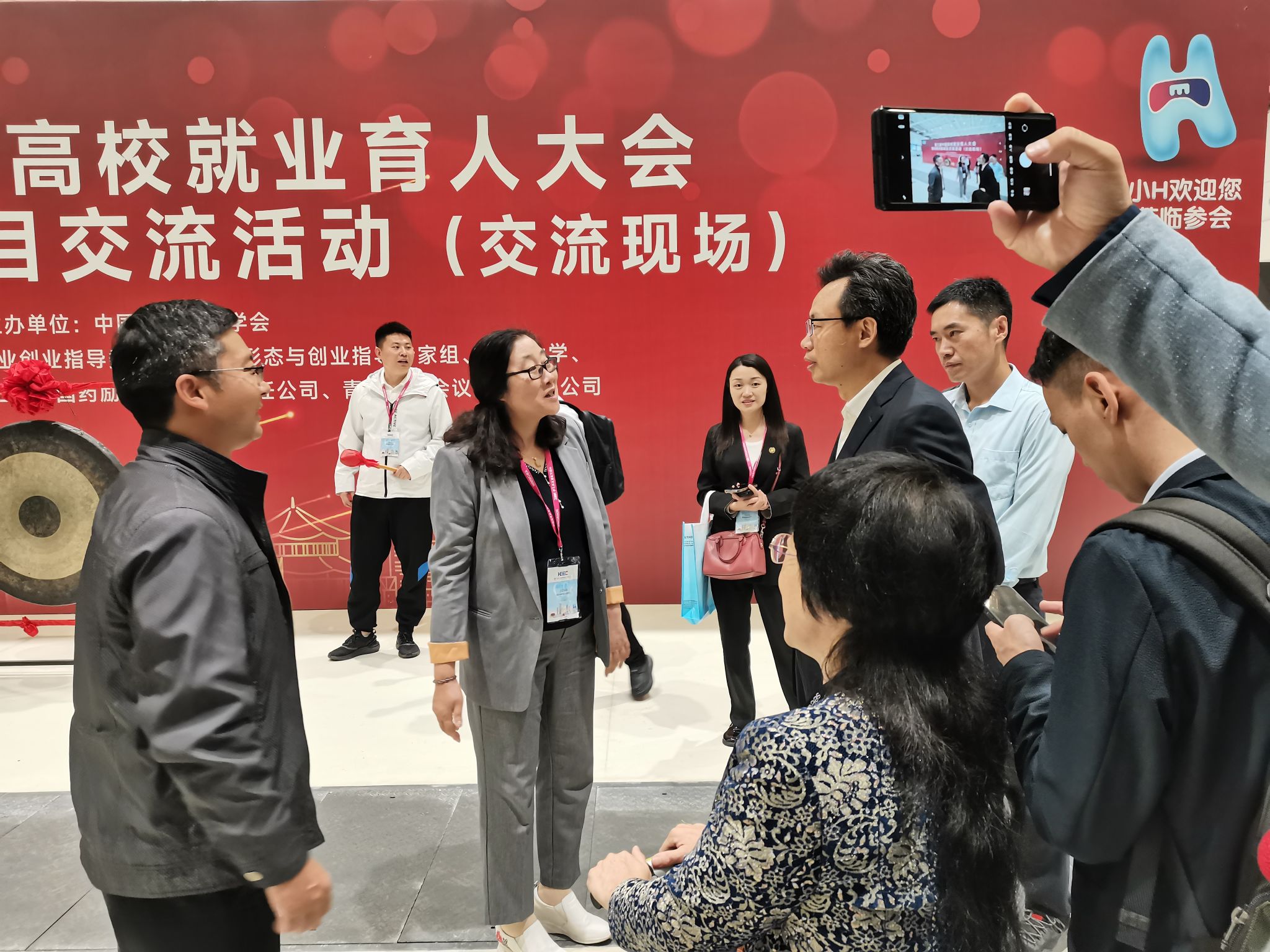 交流会现场,教育部高校学生司副司长吴爱华与魏炳辉一行进行了简短的沟通交流,为我校如何深化高校就业育人实践、促进大学生高质量充分就业提供新视角。