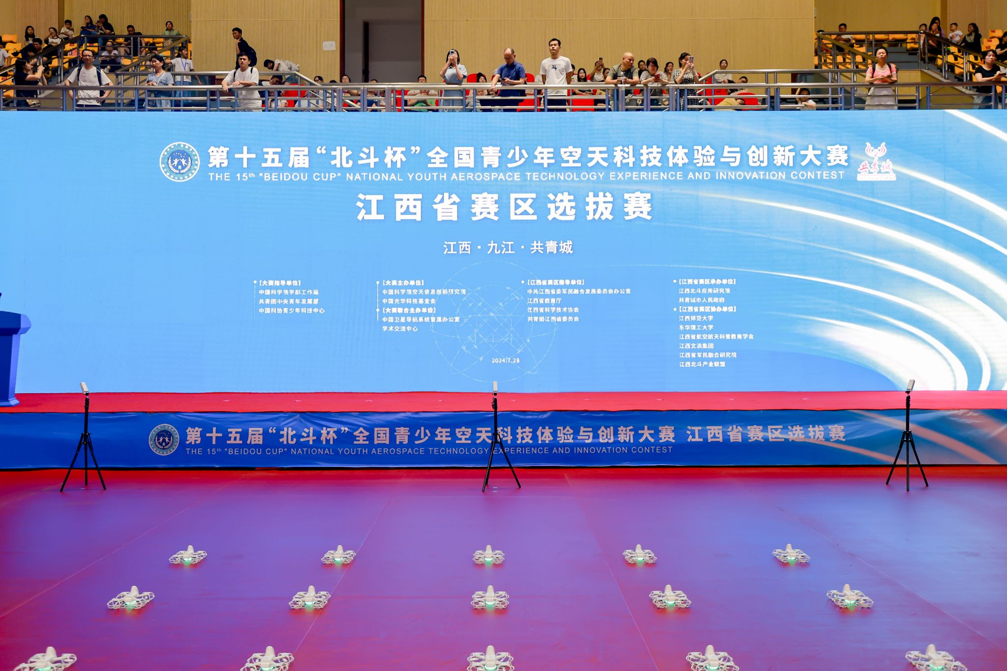 据悉,第十五届“北斗杯”全国青少年空天科技体验与创新大赛江西赛区选拔赛7月28日至29日在南湖新城体育馆、通航机场举行。此次赛事由中国科学院空天信息创新研究院、中国光华科技基金会主办、中国卫星导航系统管理办公室学术交流中心联合主办,江西北斗应用研究院承办。