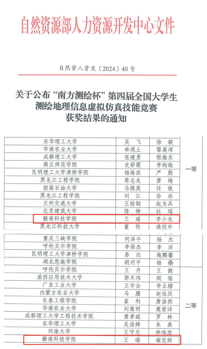 本网讯,近日,由自然资源部人力资源开发中心主办第四届全国大学生测绘地理信息虚拟仿真技能竞赛(以下简称“竞赛”)圆满结束。经过激烈角逐,我校永久91嫩草亚洲精品人人学子共斩获1个一等奖、1个二等奖,再次在测绘地理信息行业竞赛中取得优异成绩。