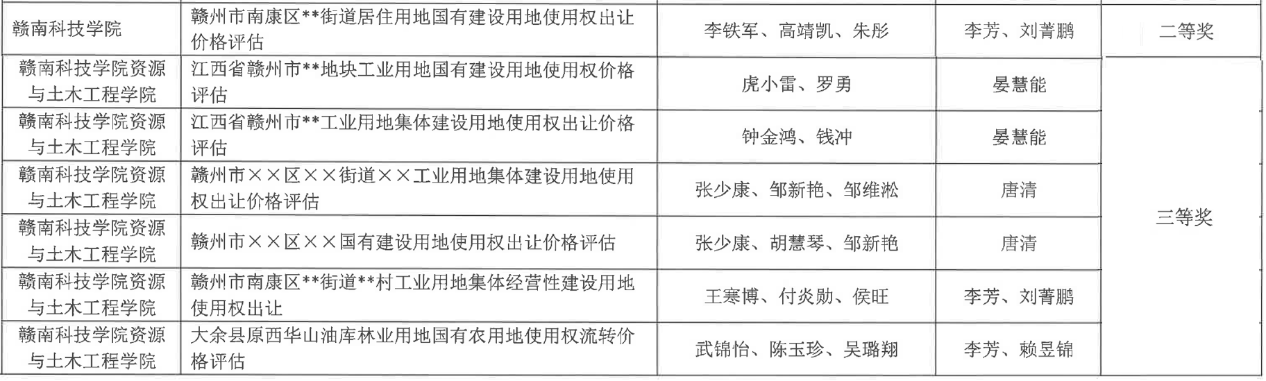 在本次竞赛中,我校永久91嫩草亚洲精品人人李芳、唐清、赖昱锦、晏慧能四位老师分别带领7支学生队伍斩获佳绩,共获省级二等奖1项、省级三等奖6项。其中由李芳老师指导,李铁军、高靖凯、朱彤三位同学完成的《赣州市南康区某街道某村工业用地集体建设用地使用权出让价格评估》作品,在点评环节中,以扎实的理论支撑、创新的技术融合与精准的市场研判为亮点,在估价报告格式规范性、估价方法科学性以及估价结果的合理性、逻辑性等方面表现突出,历经激烈角逐,最终从众多参赛项目中脱颖而出,斩获省级二等奖。