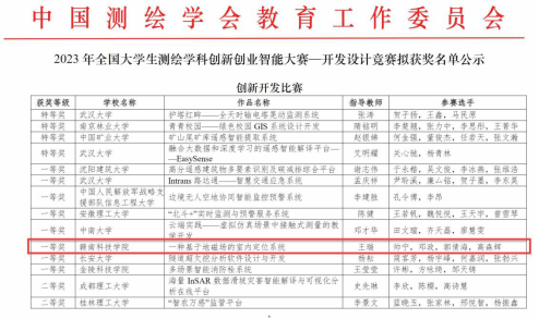 此次比赛获取较好成绩与学校高度重视学生创新创业意识培养分不开。学校测绘工程专业积极搭建学生创新创业平台,引导学生积极参加各项赛事(此前测绘工程专业学生获得江西省大学生“挑战杯”三等奖3项),坚持“以赛促学、以赛促教、学赛结合”,探索建立超学科多元化人才培养模式。此外,本次比赛充分锻炼了年轻教师教学能力、指导能力和实践能力,促进了我校与全国测绘类高校交流,增强学生学习氛围、学习兴趣及专业自信,对今后测绘专业教育教学改革、学生培养改革及深入产学研融合起到重要作用。