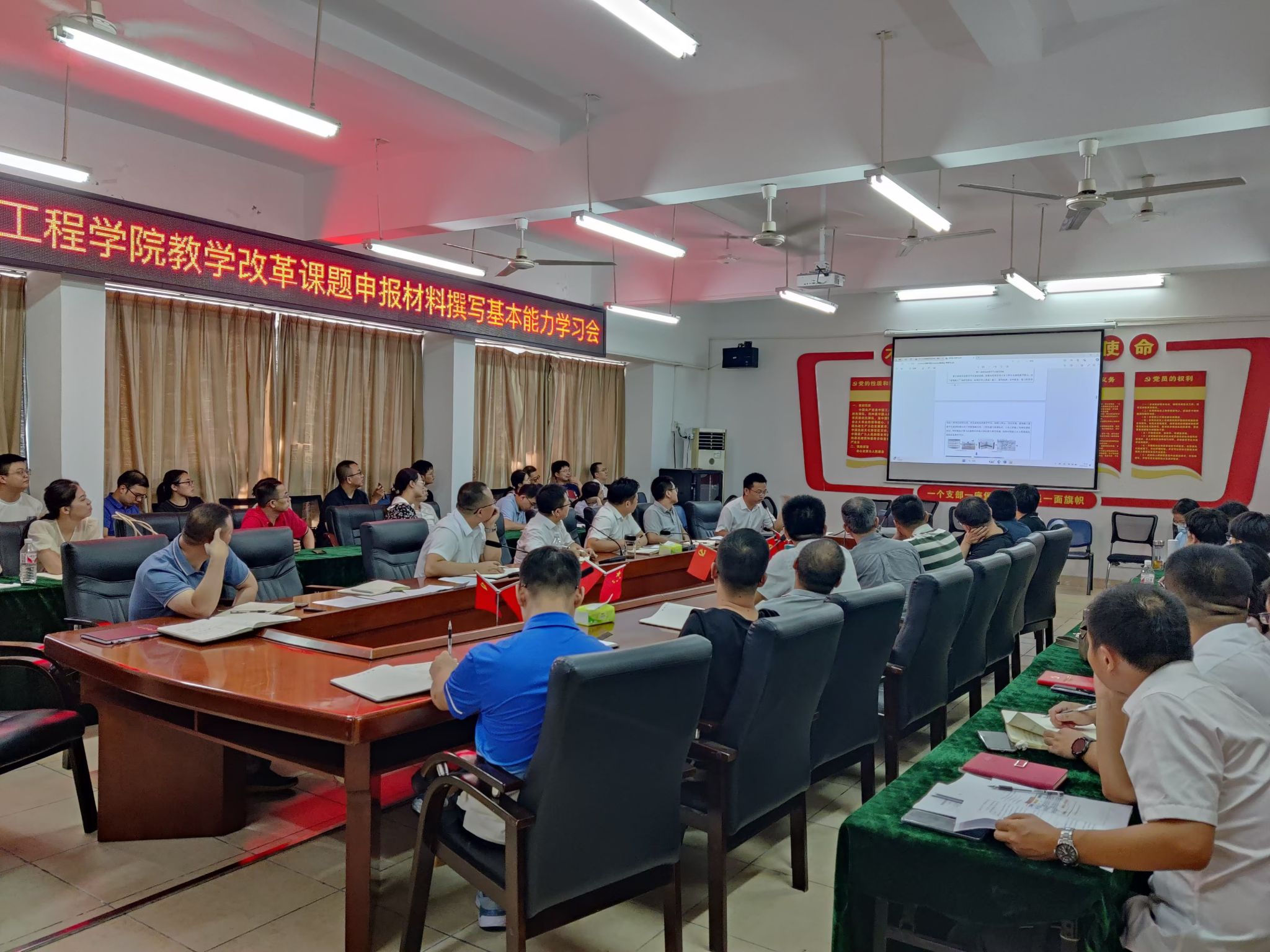 讲座过程中,赖泽金博士以丰富的经验和生动的实例,为与会教师带来一场精彩的培训讲座。赖博士从课题选题、研究背景与意义、研究目标与内容、研究方法与技术路线、预期成果与效益等多个方面,详细讲解教学改革课题申报材料的撰写要点和注意事项,还特别强调选题的新颖性、研究方法的科学性以及成果的预期价值,并结合实际案例,对如何撰写一份高质量的教学改革课题申报材料进行了深入浅出的剖析。