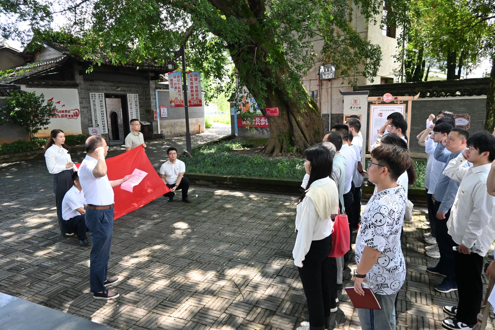 在讲解员的引导下,师生党员们来到廉政教育馆、唐江镇镇史馆和红色文化陈列馆,通过参观学习“历程篇”“纪法篇”“清风篇”“警示篇”“初心篇”等五个篇章,让党员们进一步了解了中国共产党的发展历程以及建党以来正风肃纪的反腐历程。讲解结束后,全体党员在资土学院党委书记刘俊峰的领誓下重温了入党誓词。