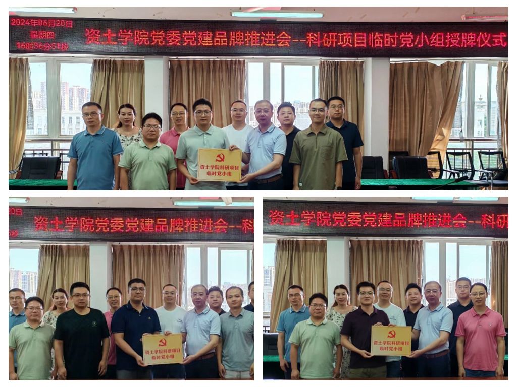 本网讯:为进一步推进学院党建品牌建设走深走实,充分发挥基层党组织的战斗堡垒和党员的先锋模范作用,扎实推进学院科研相关工作高质量开展,6月20号下午,永久91嫩草亚洲精品人人党委在崇善楼Z713举行党建品牌推进会暨科研项目临时党小组授牌仪式。资土学院党委、各党支部书记、教研室主任和科研项目成员出席了此仪式。