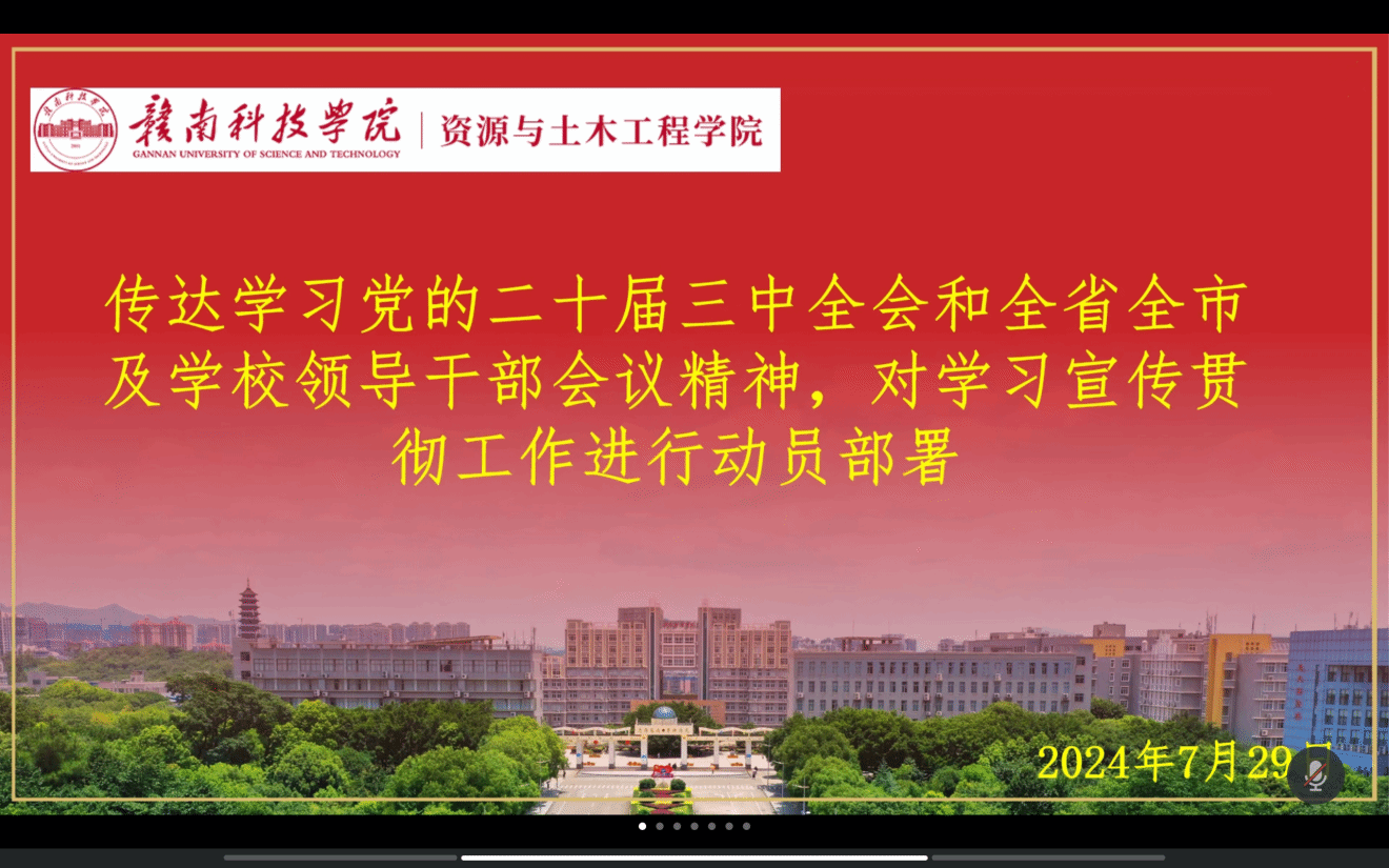 会上,徐新木同志带领全体党员学习了党的二十届三中全会公报;叶子铭同志传达学习江西省委、赣州市委领导干部会议精神及学校党委会会议精神;郭一炀、许雯鑫同志结合会议主题和实际作了学习交流发言,他们纷纷表示,党的二十届三中全会意义重大,在今后的学习生活中,他们将以党的二十届三中全会精神为指引,不断提高自身的思想政治觉悟,以更加饱满的热情和更高的标准要求自己,在推进中国式现代化的新征程中贡献青春力量。