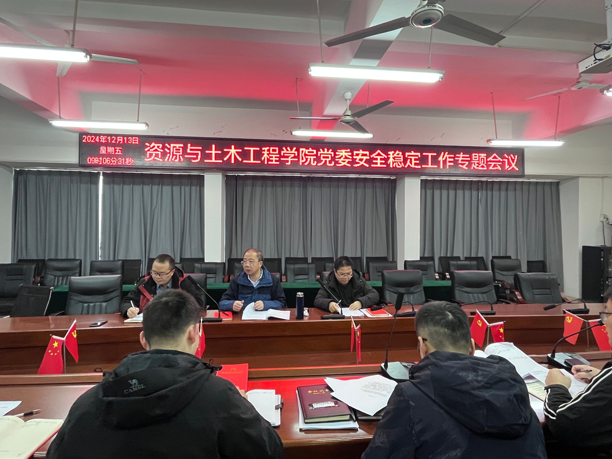会上,刘俊峰领学了习近平总书记关于安全稳定工作的重要论述,涂黎明汇报了2024年学院安全稳定工作开展情况,并提出了2025年安全稳定工作计划。