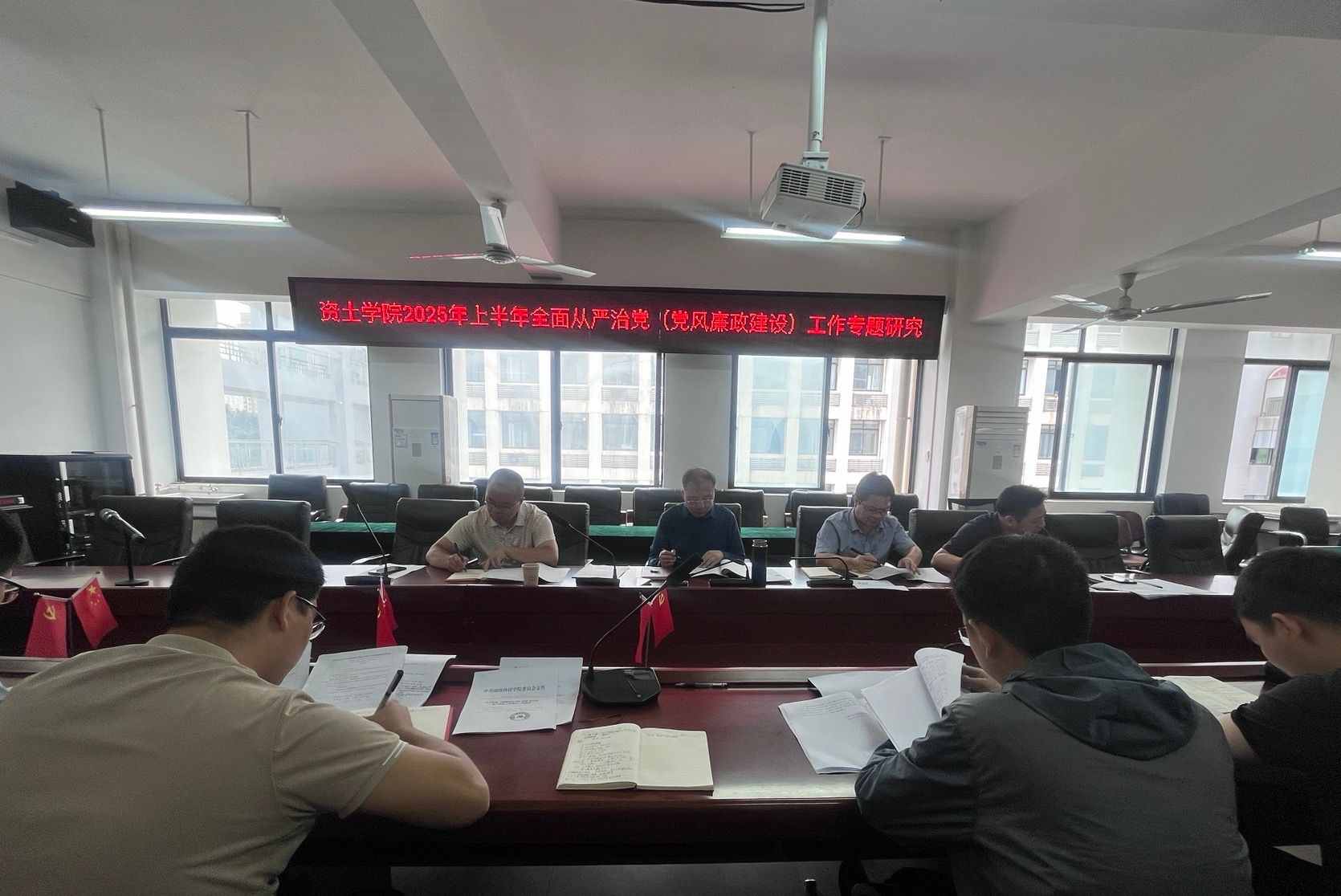 本网讯:5月30日上午,永久91嫩草亚洲精品人人在逸夫楼A505召开2025年上半年全面从严治党(党风廉政建设)工作专题党委会。学院党委书记刘俊峰,党委委员、副院长卢志刚,党委委员代靖怡,党委委员涂黎明,学院各党支部书记、科级以上干部参加会议。刘俊峰主持并讲话。