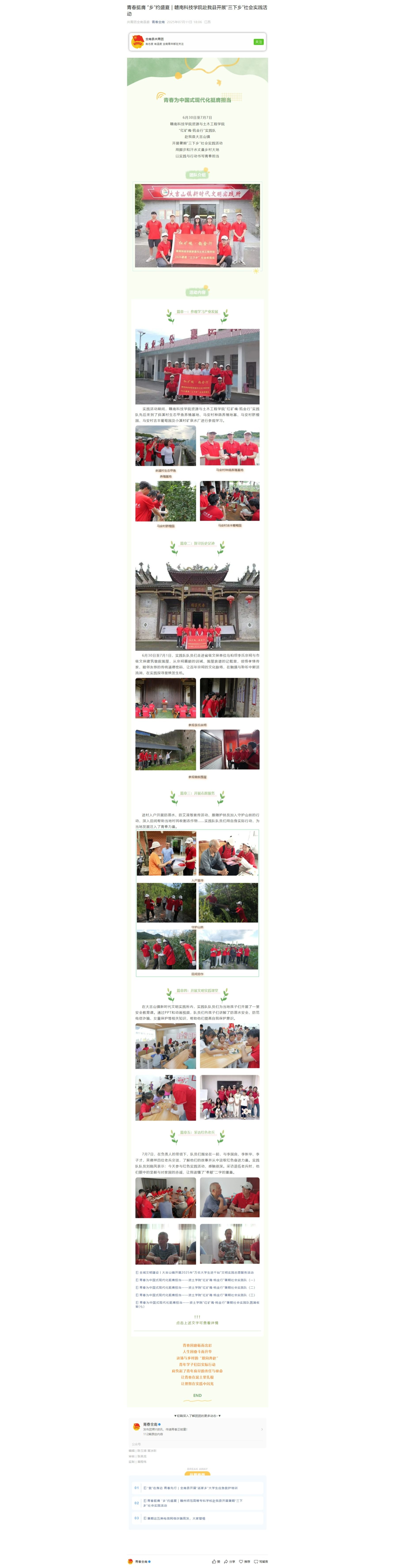 【青春全南】青春挺膺 “乡”约盛夏|赣南科技学院赴我县开展“三下乡”社会实践活动