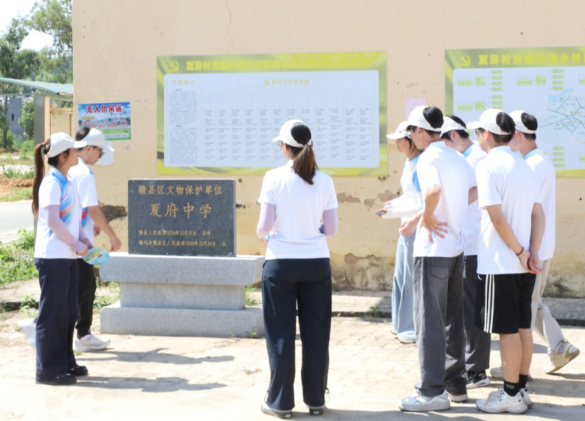 夏府中学扎根于赣南红色沃土,其校舍虽历经岁月略显陈旧,却保留着客家建筑的特色——青砖灰瓦间藏着客家民居布局神韵,木梁结尽显客家民居质朴风格。学校从战火中走来,承载特殊使命,将爱国基因融入教育血脉。在这里,队员们读懂岁月沉淀,耳畔似回荡书声,穿透时空见证先辈以教育燃国家希望的热忱,预见这份传承的远方——依托客家文化根基,以红色精神培育家国担当,让历史温度照进现实。这份延续,恰如向上向善火种,为乡土振兴积蓄青春力量 。