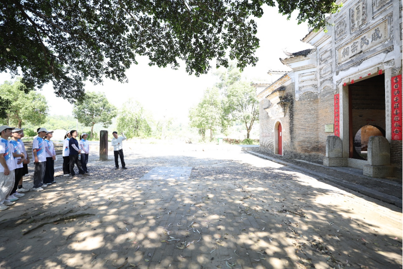 图为查书记为队员们在戚氏宗祠前介绍戚继光。