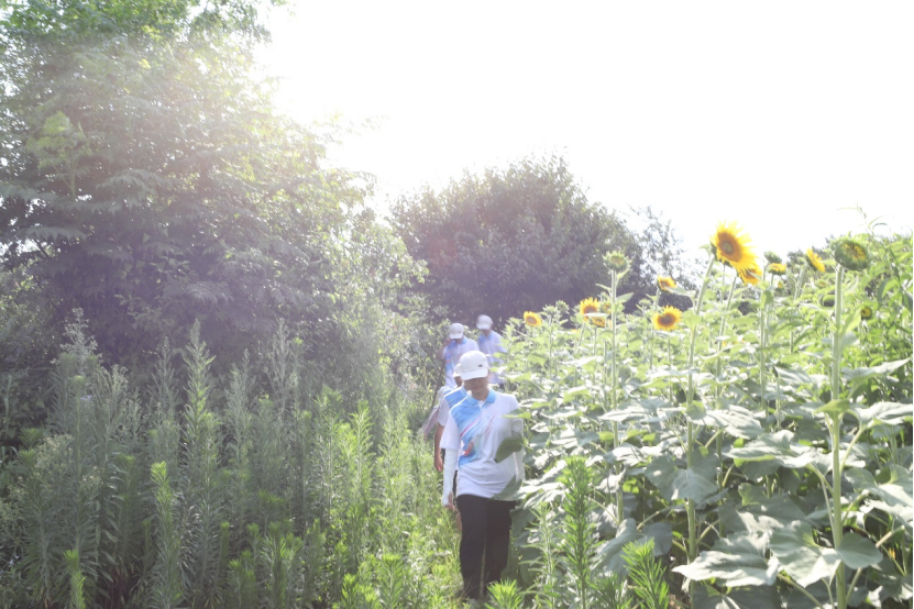 图为队员们深入向日葵基地,开展调研活动。