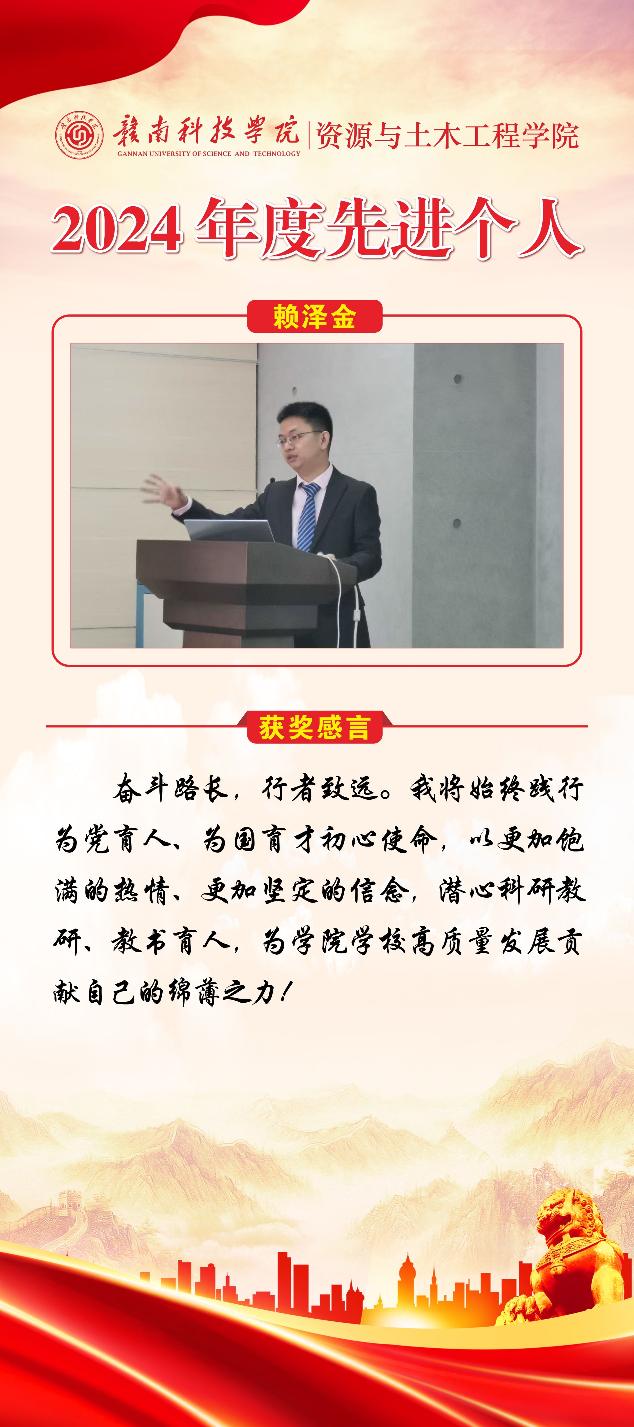赖泽金——2024年度学院先进个人
