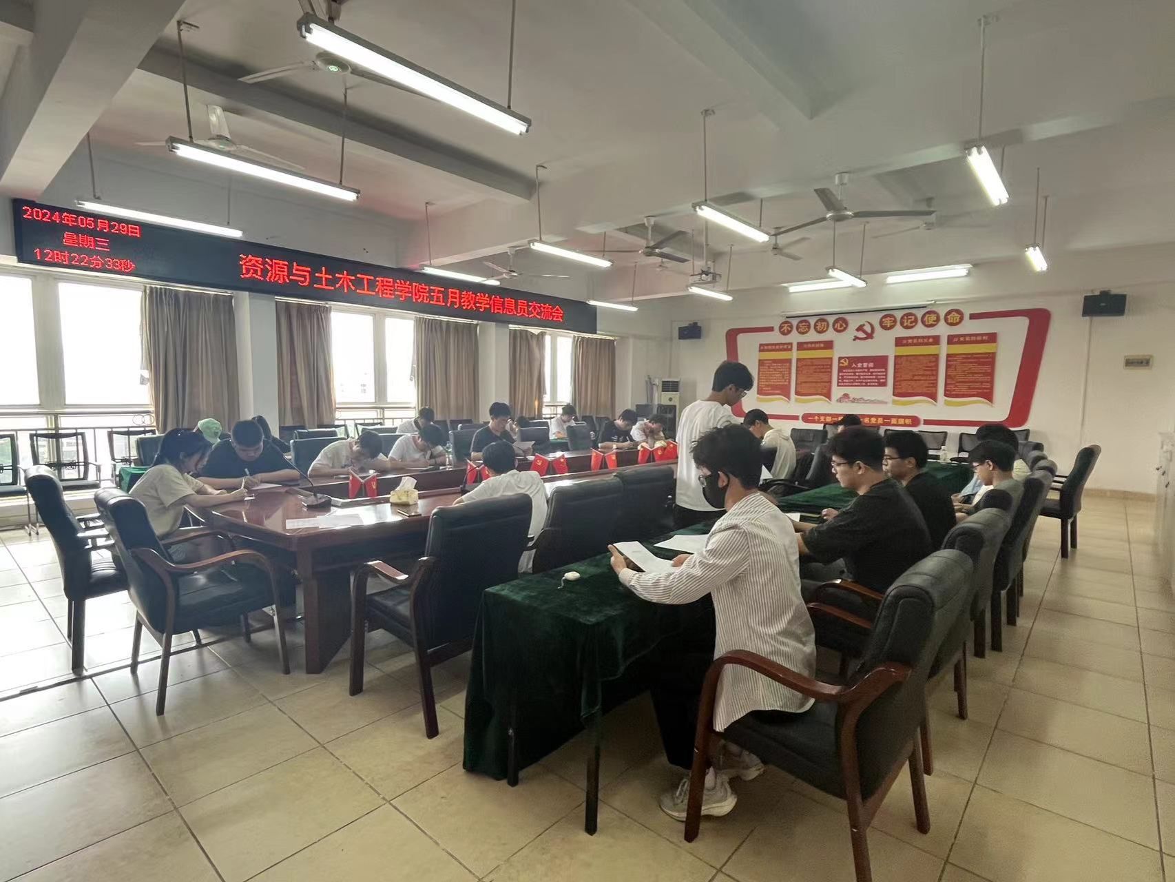 本网讯:为进一步推动教育教学信息化建设,促进教学质量的全面提升,强化学生对本科教学工作合格评估的认识,落实“以评促建、以评促改、以评促管、评建结合、重在建设”的指导方针。5月29日中午,永久91嫩草亚洲精品人人于崇善楼Z713开展教学信息员交流会,会议由资土学院教学秘书罗薇主持。